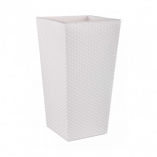 Кашпо напол."Ротанг" со вставкой (230х220х415 мм) (белый)(уп.5)