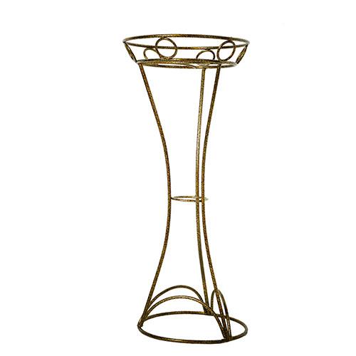 Оригинальная форма в виде кованой вазы, придется по душе многим ценителям такого стиля. Подставка сделана из стального прутка диаметром 10мм и окрашена в золотой с черным цвет. Сверху находится одна большая корзинка - размер нижнего кольца 25см, верхнего кольца - 31см, высота корзинки 6см, украшенная декоративными коваными колечками. Подставка имеет устойчивое основание. Высота подставки 56 см, ширина 33 см. Вес изделия составляет 3,2кг.