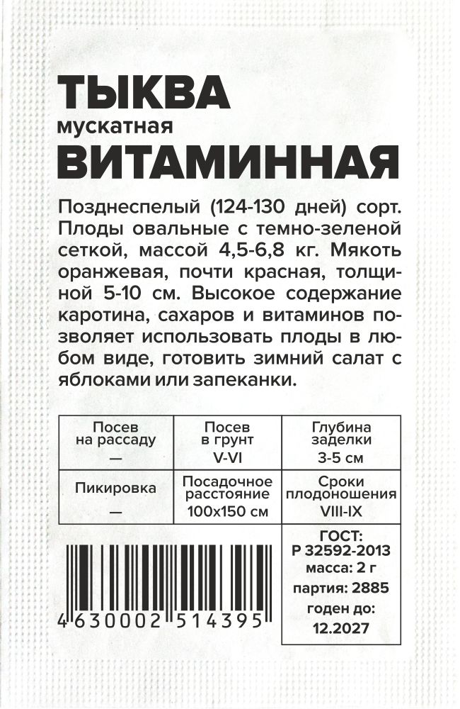 Тыква Витаминная б/п тип мускатная/Сем Алт