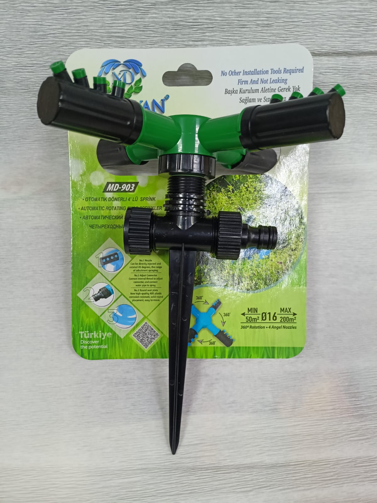 Разбрызгиватель легко подключается к садовому шлангу и не требует специальных навыков для установки. Благодаря продуманной конструкции, устройство опрыскиватель обеспечивает оптимальное увлажнение почвы без переувлажнения.