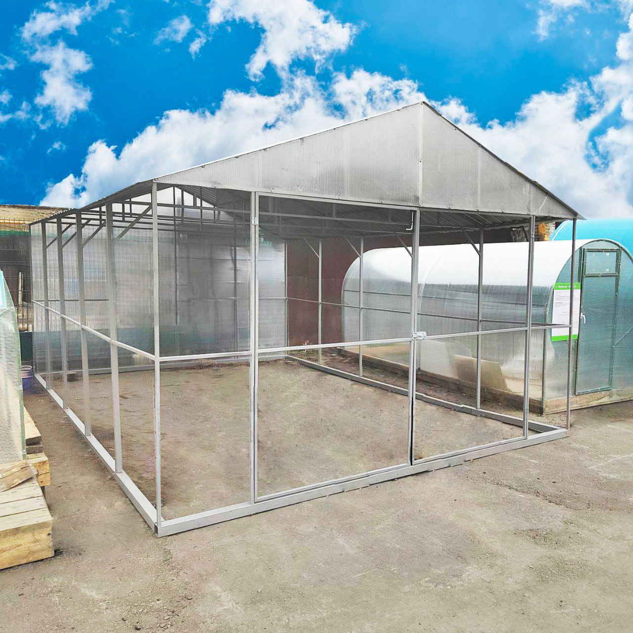 В стоимость входит металлический каркас, без покрытия крыши.